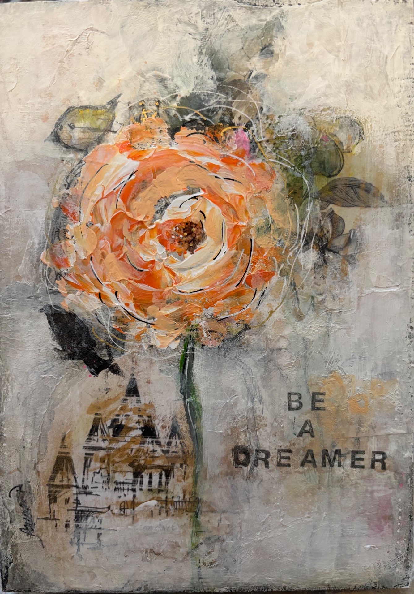 Mixed mediassa teos rakentuu kerroksista – visuaalisesti ja usein myös sisällöllisesti. Materiaalit eivät ole vain välineitä, vaan osa ilmaisua. Pinta saa olla rosoinen, elävä ja moniulotteinen.