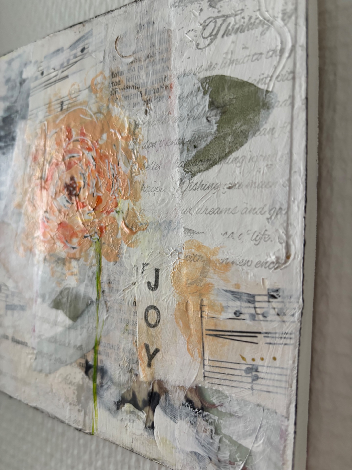 Teoksen koko on n. 15 x 14,5. Teos on sekatekniikkateos, jossa on käytetty taustalla tapettia, vanhojen kirjojen sivuja ym. maalaus on maalattu akryylimaaleilla.